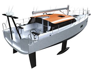 The 42-foot LOA was chosen as the best size for space on board and ease of handling, says Schernikau. ‘The Pure 42 is our solution for an easy-to-handle, single- or double-handed yacht for owners of any age. Many sailors won’t choose a 50ft yacht because it’s too cumbersome in port, especially in the Baltic where we have small harbours. The twin double-cabin 42 deck saloon gives two people, plus two guests, plenty of space and living comfort to stay on board for a long time, long enough to cruise around the world, through Arctic waters if you want to. For the last 20 years “deck saloon” has meant a motorsailer with a fixed three-blade prop, going at five knots. Our deck saloon concept means fast cruising and comfortable living, even if you’re a little bit older.’
