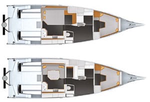 The yachts will be delivered fully specified with systems the yard knows work well. Steering is by Jefa, electric winches by Andersen, deck gear by Ronstan, furlers by Facnor, Lofrans windlass, retractable Max Power bow thruster, folding prop, Rocna anchor and Raymarine electronics as standard with NKE in the performance package. It’s ready to sail away.