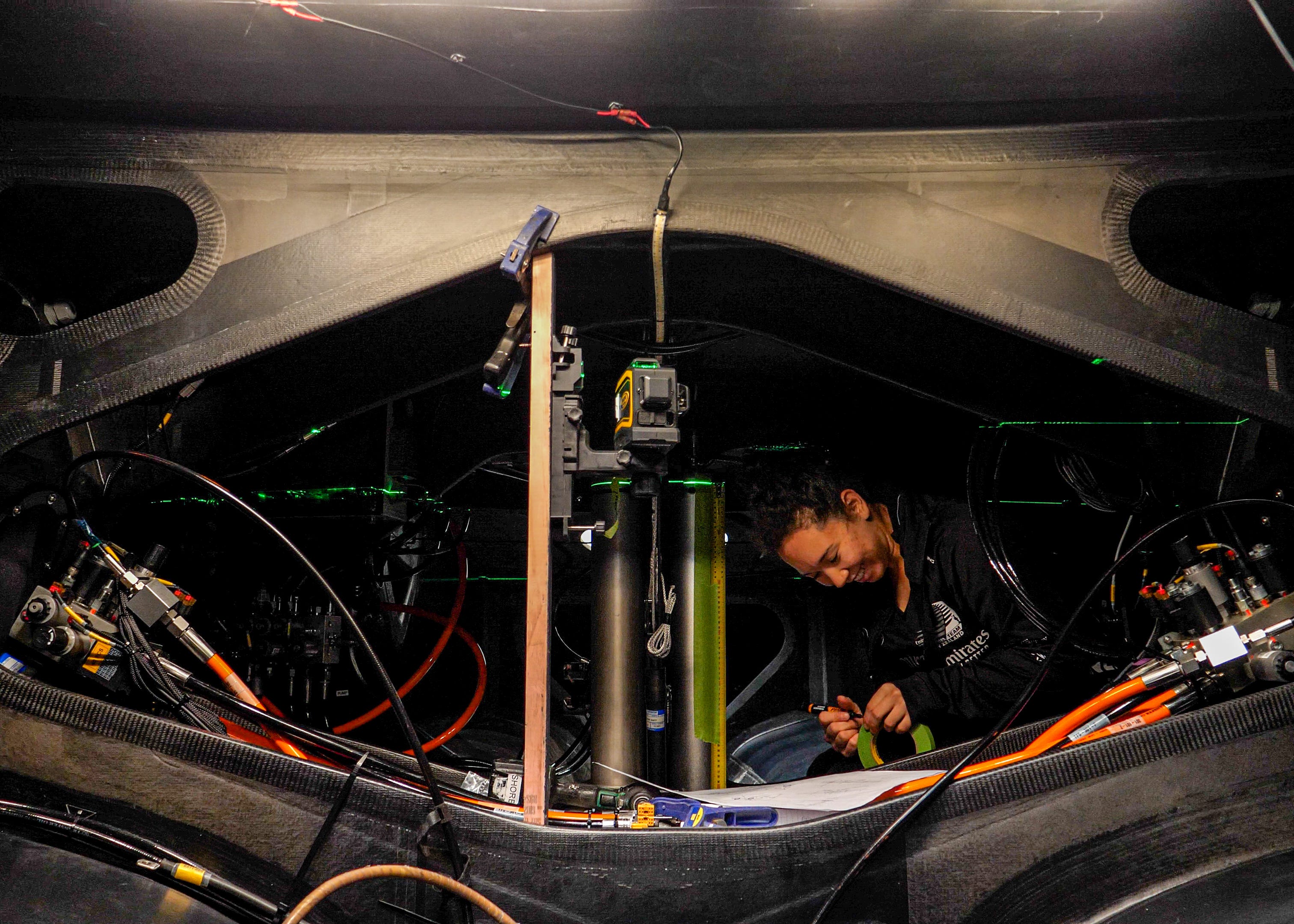 Structural testing of a new boat is always a tense moment for the engineers as the platform is flipped upside down and connected to a testing rig designed to simulate the predicted load cases the AC40 will experience while racing.