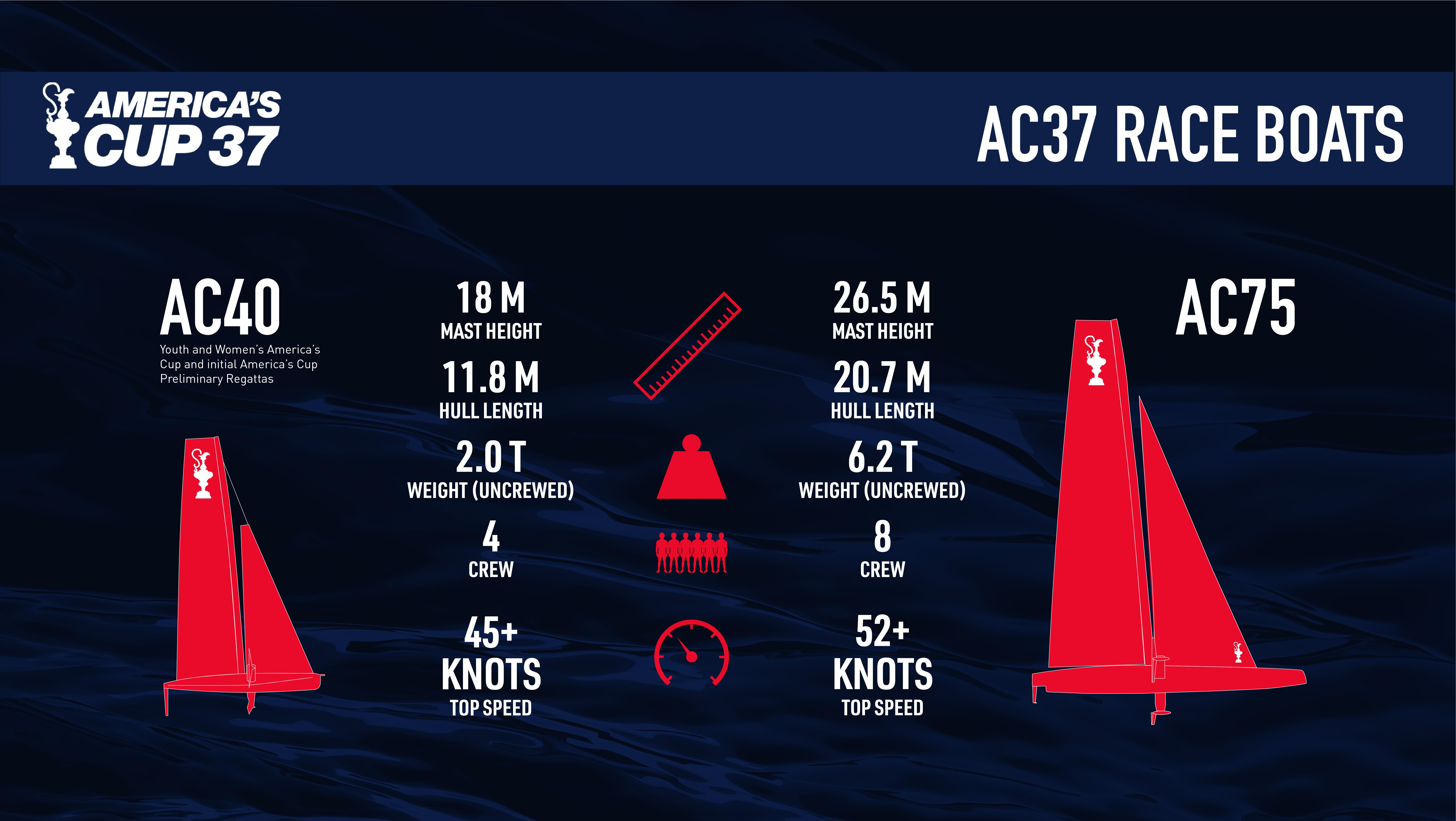 One of the most exciting new aspects of the 37th America’s Cup cycle is the introduction of a new America’s Cup class – a scaled down 40-foot foiling monohull version of the AC75 class, known as the AC40.