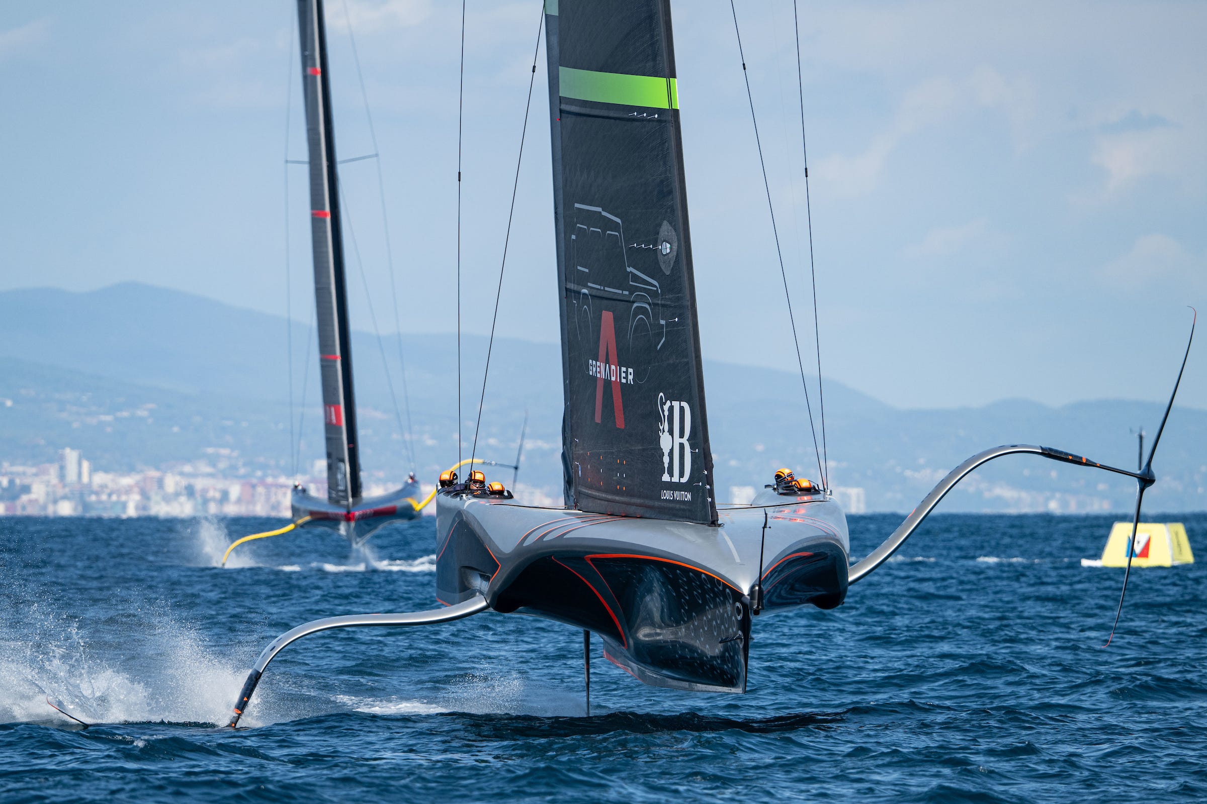 With so many permutations at the start of the day, all eyes were on the winds in Barcelona as a building southerly thermal filtered up the Mediterranean and produced just enough to get racing underway. From the very start, INEOS Britannia looked sharp with Sir Ben Ainslie’s team dispatching the French, and thus closing down immediately one of the day's permutations, after a runaway race where Orient Express Racing Team did their level best to come back into late on. The British showed composure to cross the line after six legs with a 71-second winning delta.