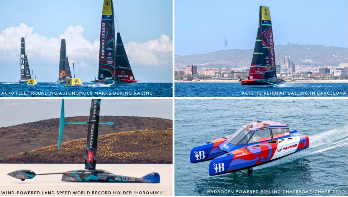 Since defending the America's Cup in 2021, the Emirates Team New Zealand design team has successfully delivered major commercial projects including hydrogen-powered foiling chase boats, the AC40 class yachts, a world-leading autopilot system, the autonomous racing mark drones recently deployed to the Vilanova preliminary regatta – and of course a world record beating land yacht.