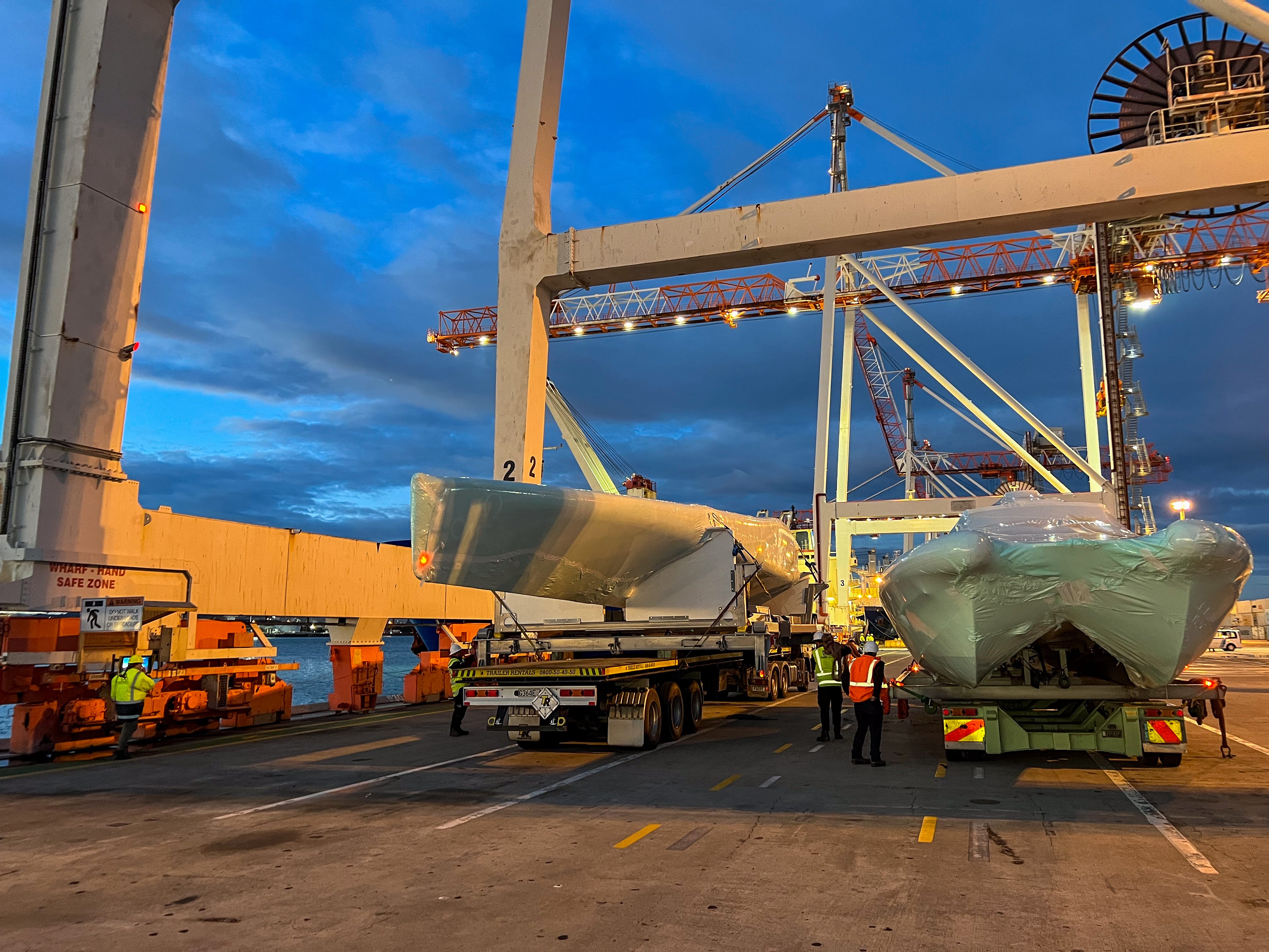 The arrival of containers and equipment is paramount when looking ahead to the construction of the workshops and wider working space within the Emirates Team New Zealand Barcelona base, all with the ultimate objective of being ready to receive Taihoro and prepare the yacht and the team to get back out on the water in Barcelona as soon as possible.