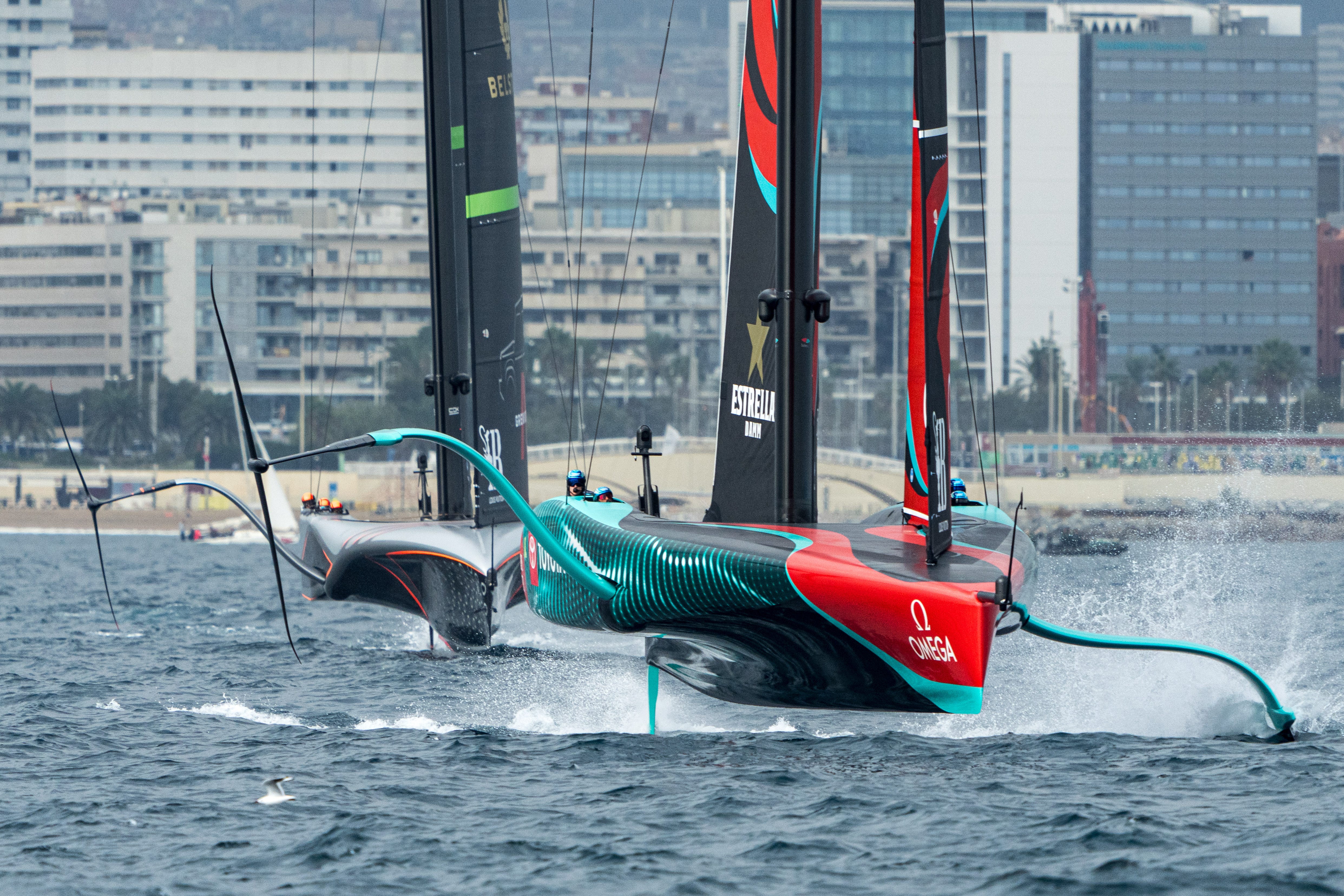 There was a special feeling in the Port Vell, Barcelona this afternoon as Emirates Team New Zealand and INEOS Britannia docked-out of a packed waterway and despite the drizzle, crowds thronged around the harbour as packed pleasure-craft honked horns to send off these two elite teams that are locked in battle for the Louis Vuitton 37th America’s Cup.