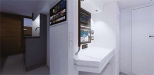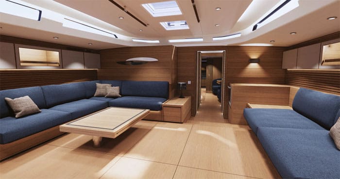 ‘It’s a long companionway with good steps, at least 30 degrees for easy access. It can also be used by the owner if they want to do some navigation, because that’s where the nav station is.’