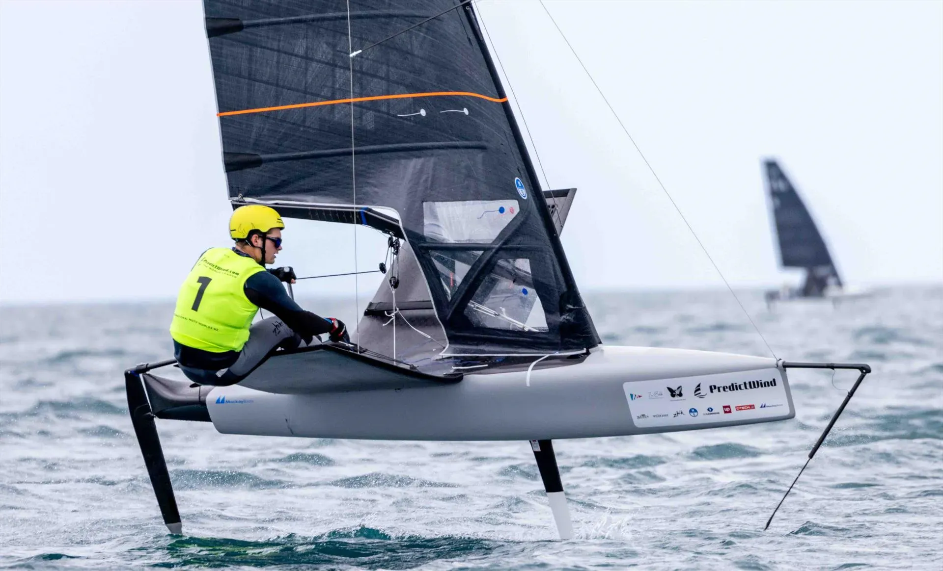 Foil size is also critical and it’s an area that came under much scrutiny with Coutts’s boat in its pre-worlds configuration where development foils were attached, presumably via direct input from the resources he can call upon from the SailGP world. From the beach, many observers opined that they were steel but for the worlds themselves, Coutts was on more conventional carbon, and it was a straight choice between smaller ones on the windier days and towards the end, the larger ones to promote faster flight. It’s a key area of development going forward through to Lake Garda this summer.