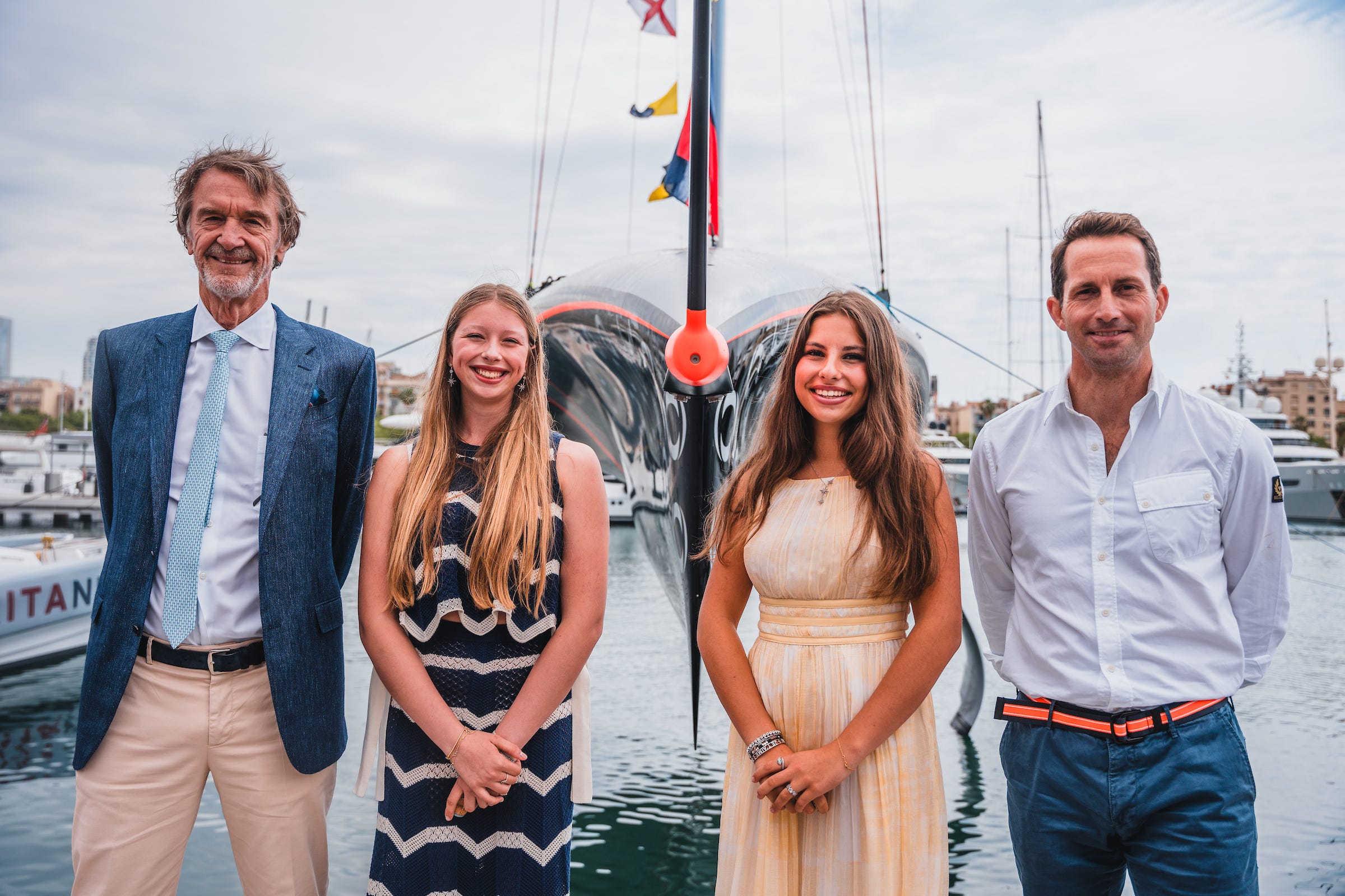 Julia Ratcliffe and Romane Polli, the daughters of Sir Jim Ratcliffe and his partner Catherine Polli, who are both 16 years old, were appointed the godmothers of Britannia and christened the boat by spraying Nyetimber’s English sparkling wine on the bow, a traditional act performed on all new boats for good luck.