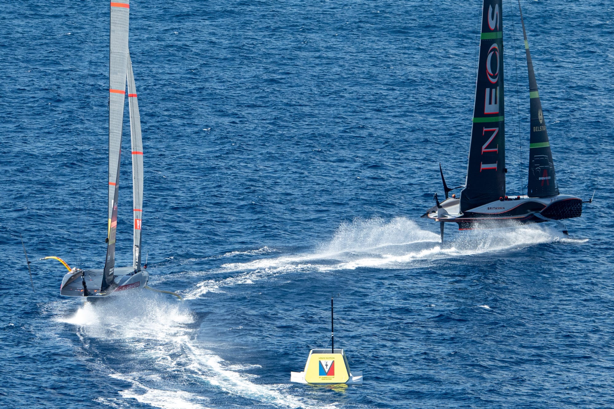 The Italians kept pressing, however, splitting gybes on the final downwind and heading to the right, whilst INEOS Britannia bounced off the left boundary. As the two came back together mid-course, it was the final time that the British would allow a split as they gybed on the Italian line with a lead of just under 200 metres. It was enough to sail to the port layline and gybe before pointing the boat at the finish line for a historic victory.