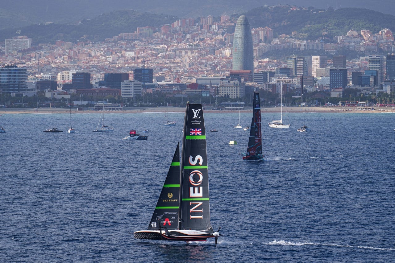 A warm and humid day in Barcelona yielded southerly thermal breezes of 7-11 knots for two absorbing races in the Louis Vuitton 37th America’s Cup Match that saw INEOS Britannia, the Challenger of Record, take back-to-back victories to move the scoreline to 4-2.