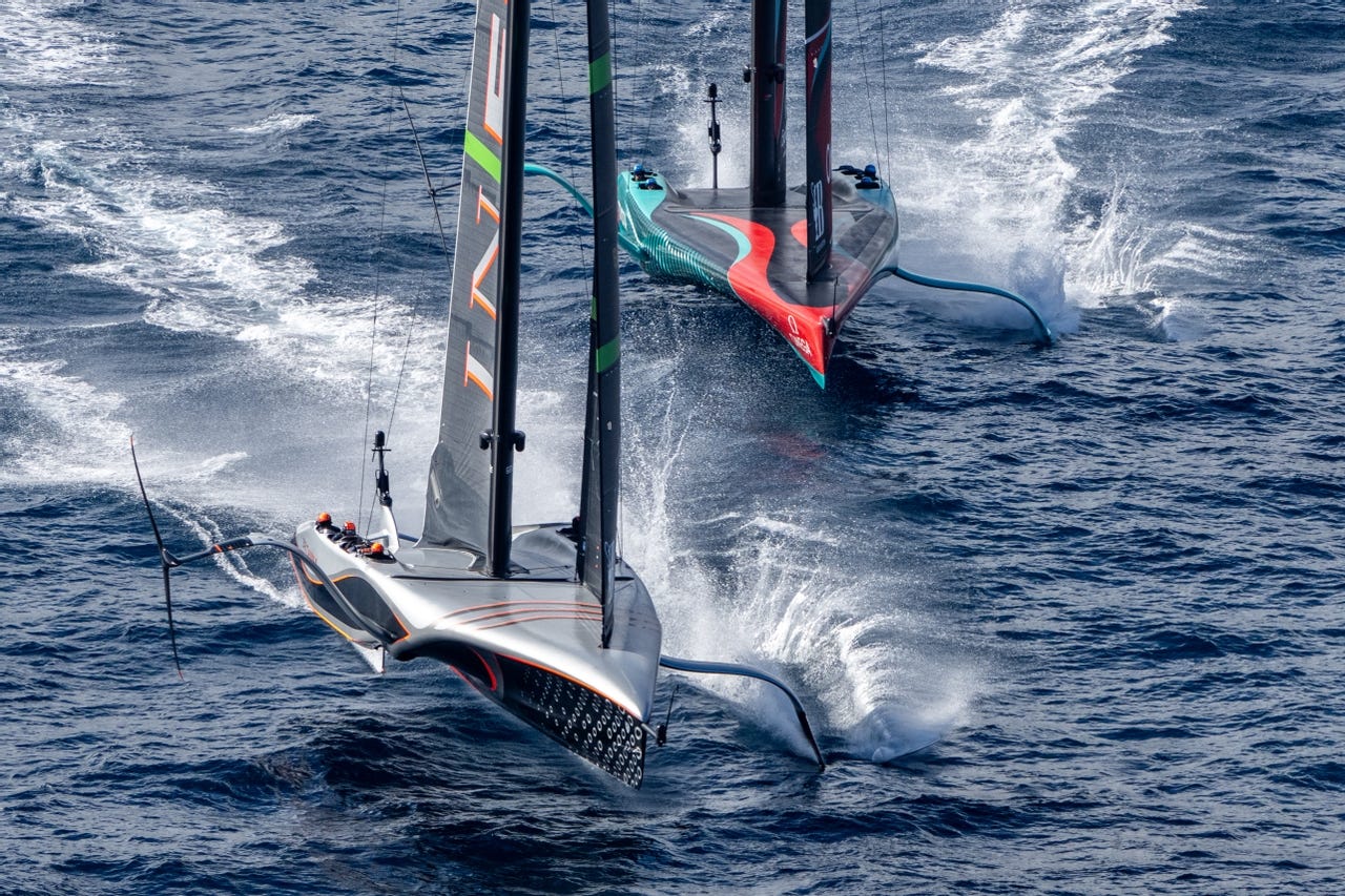 Uncontested, INEOS Britannia shot out into a lead of over 1,700 metres before the Kiwis could get back up and flying. From that point on, for the British, the race was all about staying on the foils.