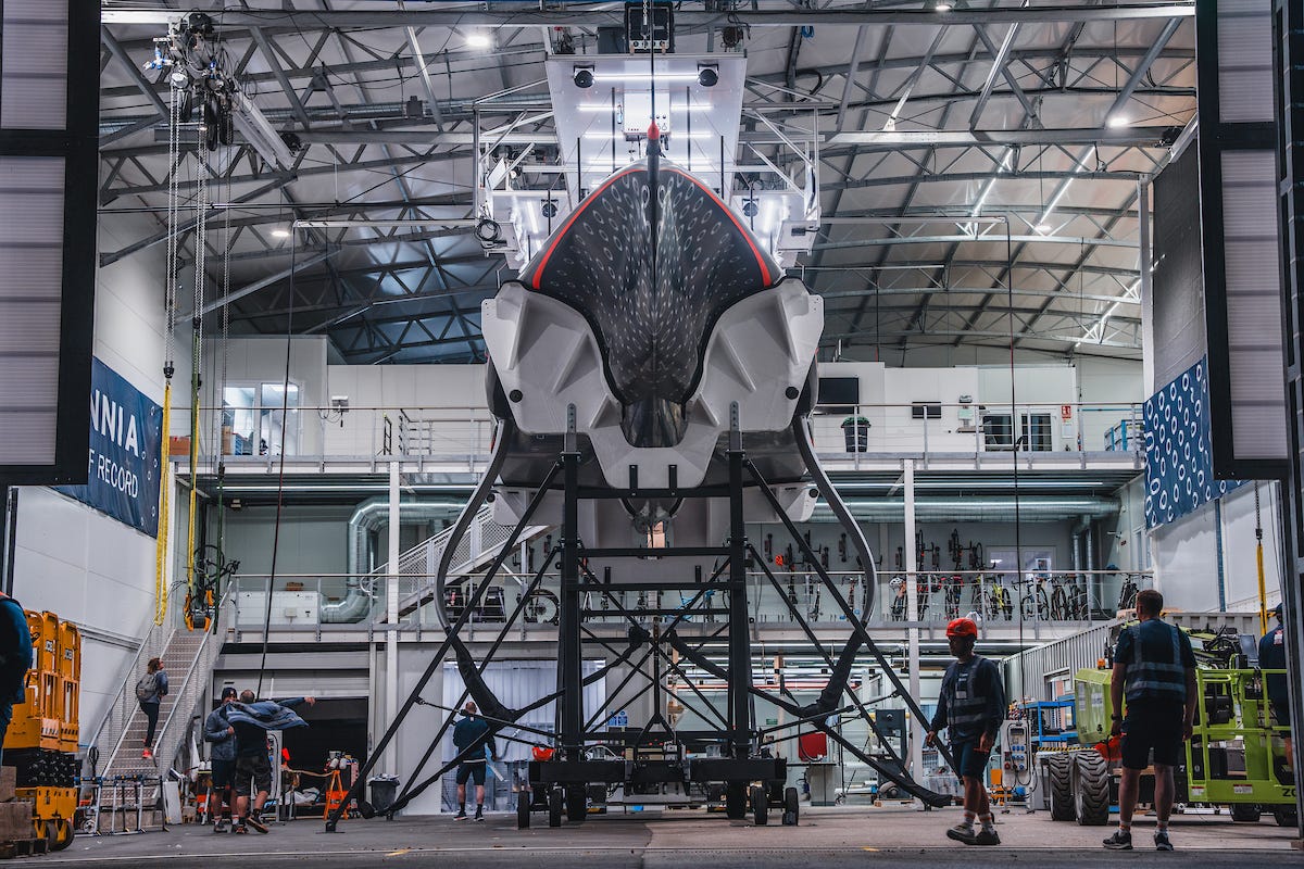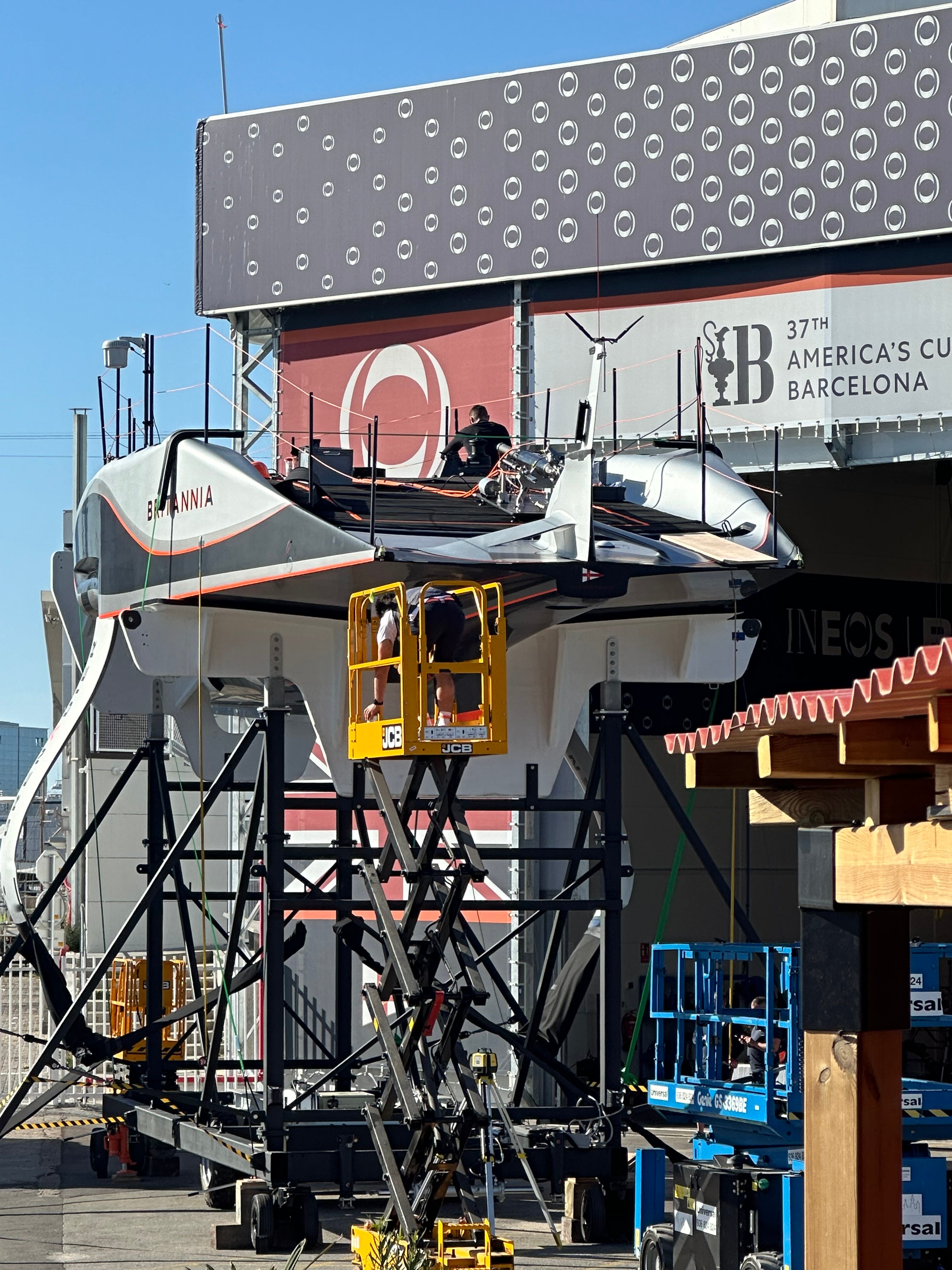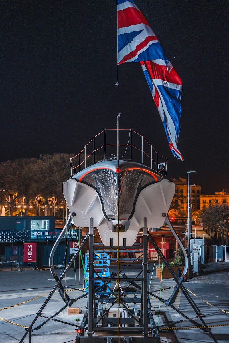 The initial build took place at Carrington Boats in Hythe, Hampshire, before it was then transported to the INEOS Britannia team at Turweston in Northamptonshire for structural and load testing. On 2 April, RB3 left Turweston for its journey to Spain, arriving at the INEOS Britannia Barcelona base on 6 April.