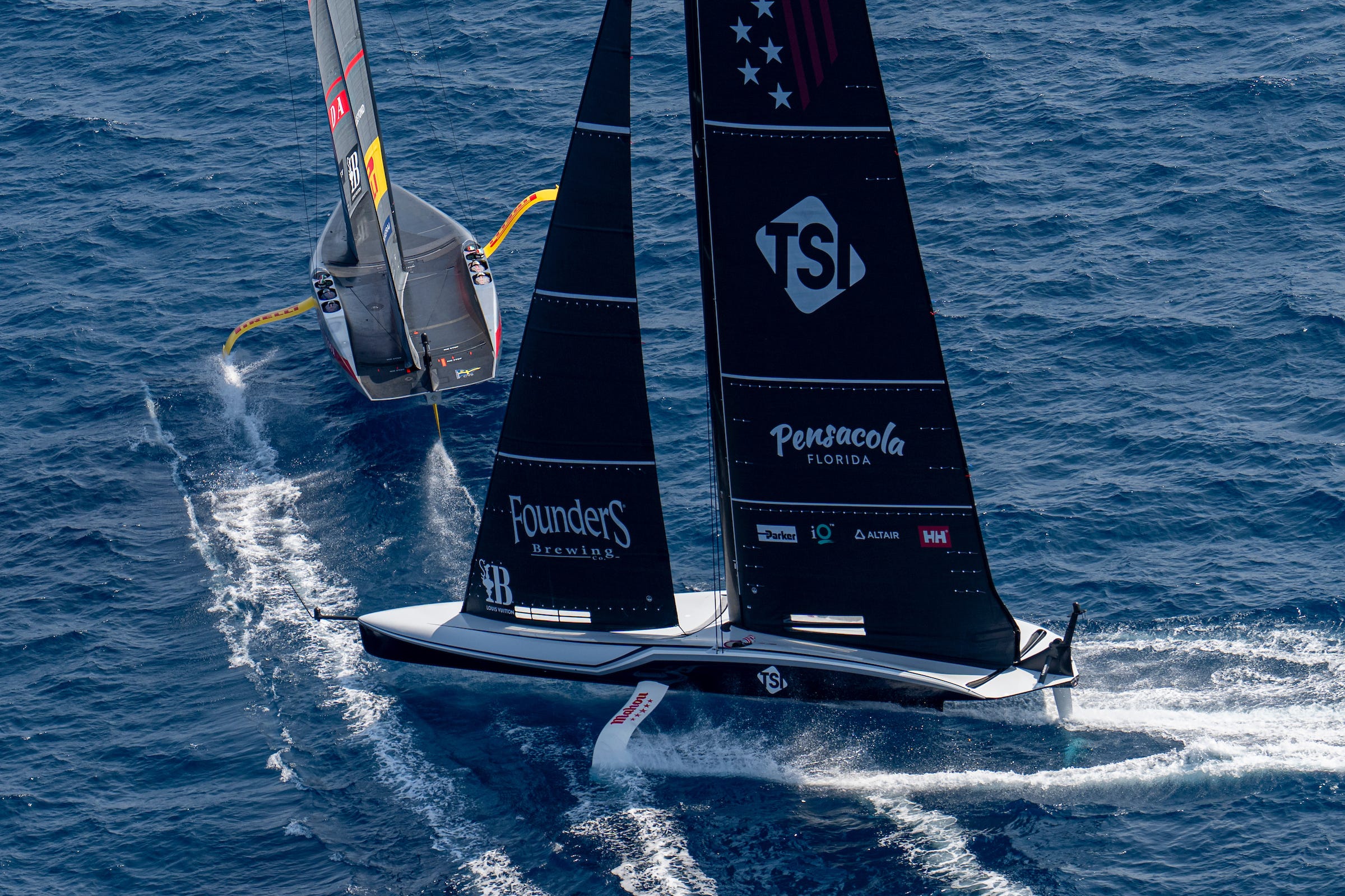 Arnaud Psarofaghis, skipper of Alinghi Red Bull Racing, was sanguine about their first loss of the regatta and saw the positives in defeat, saying: “It was a really interesting race in all aspects. We just misjudged the start, came back a little late to push American Magic but they nailed it really nicely, from there the race was won and they really locked the game down, and so we just tried to sail our boat well and try to get as much data as possible to see what we can improve for tomorrow and mainly for next week. But really positive day for us, massive learning and I mean we didn't win the race, but we learned a lot of stuff.”