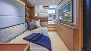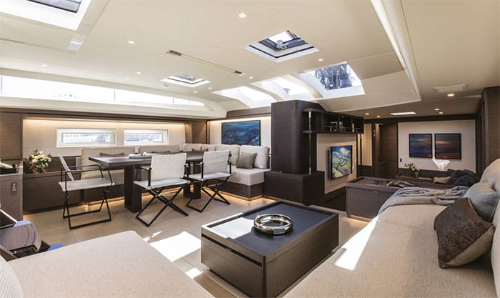 While the yard’s Smart Custom approach means each of the last four boats to be launched have very different interior styles, there also needs to be a great deal of commonality in terms of production processes. At the same time, all have plenty of top quality joinery on show, including apparently substantial capping pieces that readily absorb the knocks and bangs that are inevitable with regular use on long ocean passages. In this respect it’s not at all obvious that these aren’t traditionally constructed and therefore heavy interiors.