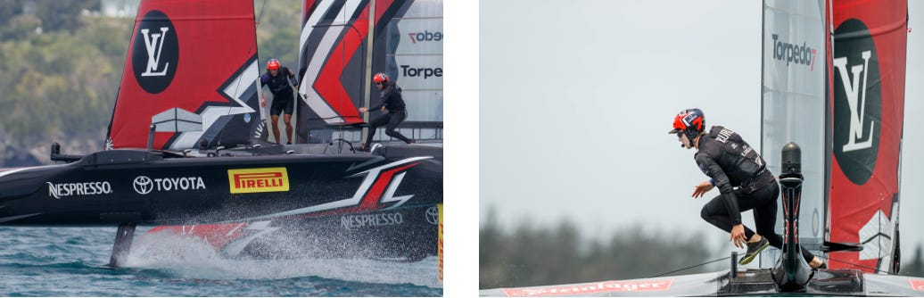 Both take the same approaches in areas such as 3D design and in combining sustainable, lightweight materials, whether in crafting Trophy Trunks or the foils which enable the AC40 and AC75 to glide ever more rapidly through the water.