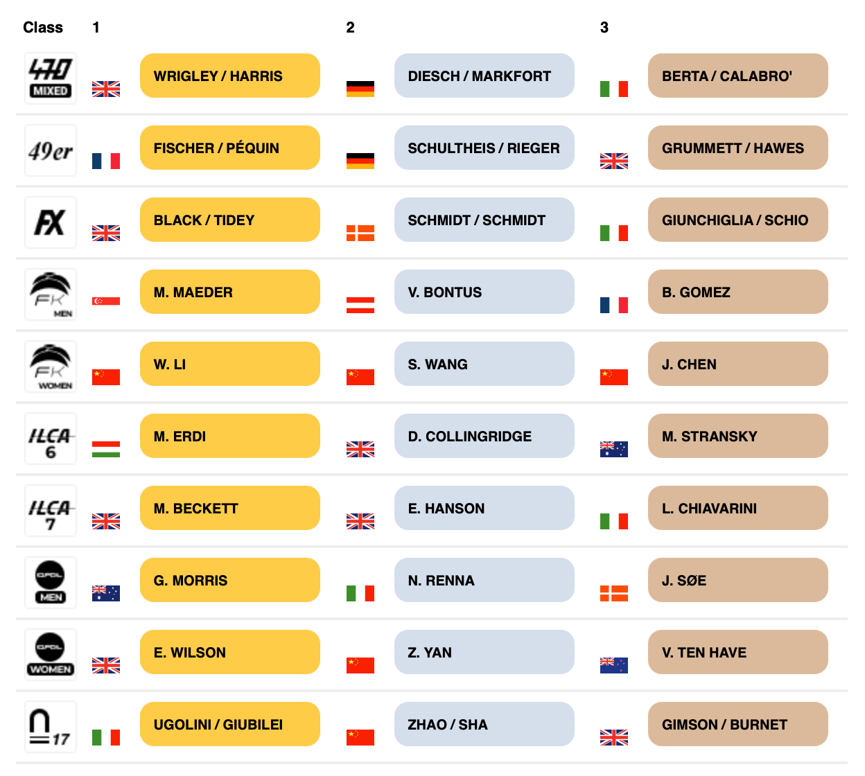 “We had a decent offshore breeze, shifty, gusty, quite tricky and the windiest so far this week,” she said. “I love racing with this new rig, the 7.3 suits me quite well.” Wilson now leads by 22 points.