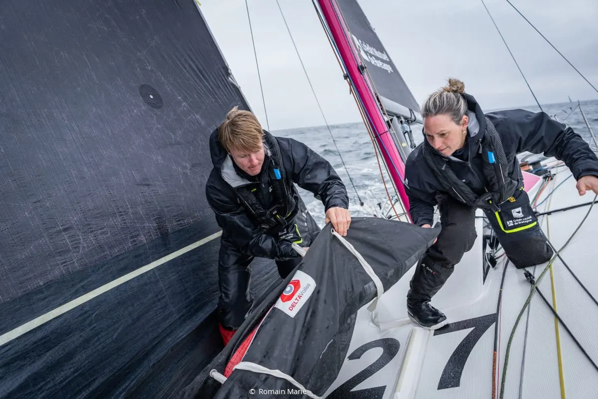 For eight days straight, this fleet of dual-sex crews has been enjoying some pretty lovely-looking downwind sailing since they set off from northern France on April 20. Spinnakers have been up virtually non-stop since the start, but while it may appear idyllic from behind our keyboards and screens, the incessant sail changes and strategic gybing routines has meant bleary-eyed, sleep-deprived sailors across the fleet.