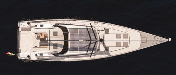 That connection is helped by the glazed aft bulkhead of a quasi-deck saloon, including a wide companionway hatch of sliding glass, creating a single inside/outside space. ‘Back then we didn’t know if people would appreciate this,’ Paš recollects, ‘but we’ve been proved right. We’re selling the 21st Pegasus 50.’ The previous 20 are sailing worldwide, in the Med, United States, Baltic and elsewhere.