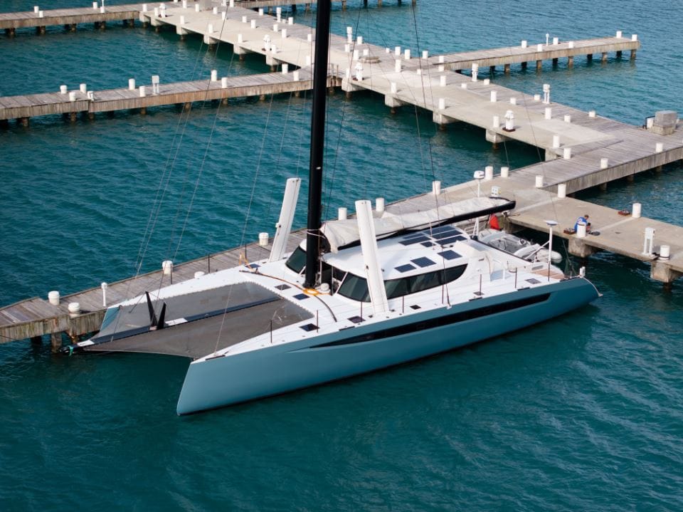 The hulls and structural components are made from carbon fibre, reducing weight and increasing stiffness, which translates into faster, more responsive sailing.