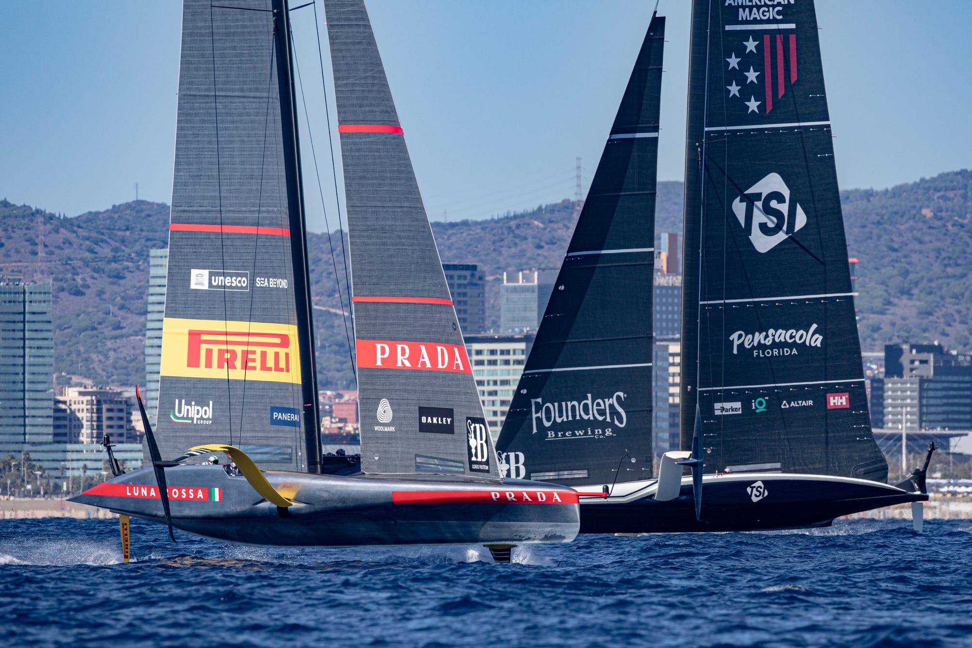 The business end of the Louis Vuitton Cup began today under bright sunshine on the stunning waters off Barcelona, with the first day of the Louis Vuitton Cup Semi-Finals seeing two utterly ruthless performances from the top two Challenger teams to emerge from the initial Round Robin series – INEOS Britannia and Luna Rossa Prada Pirelli.
