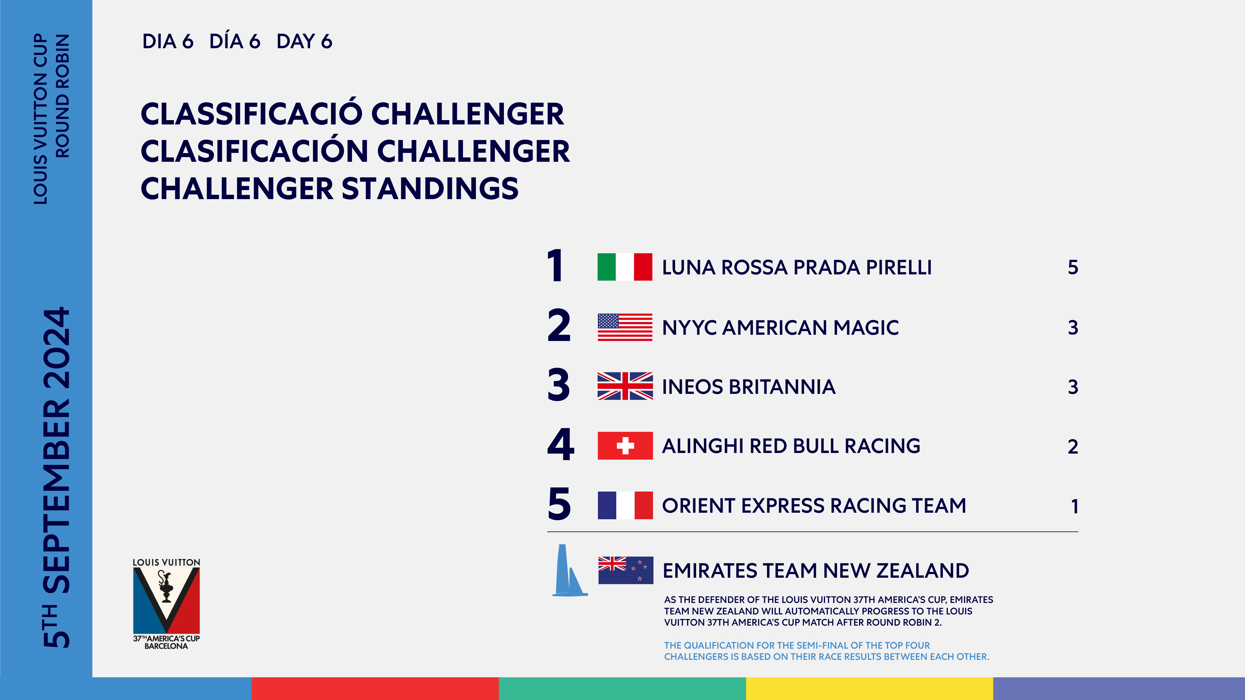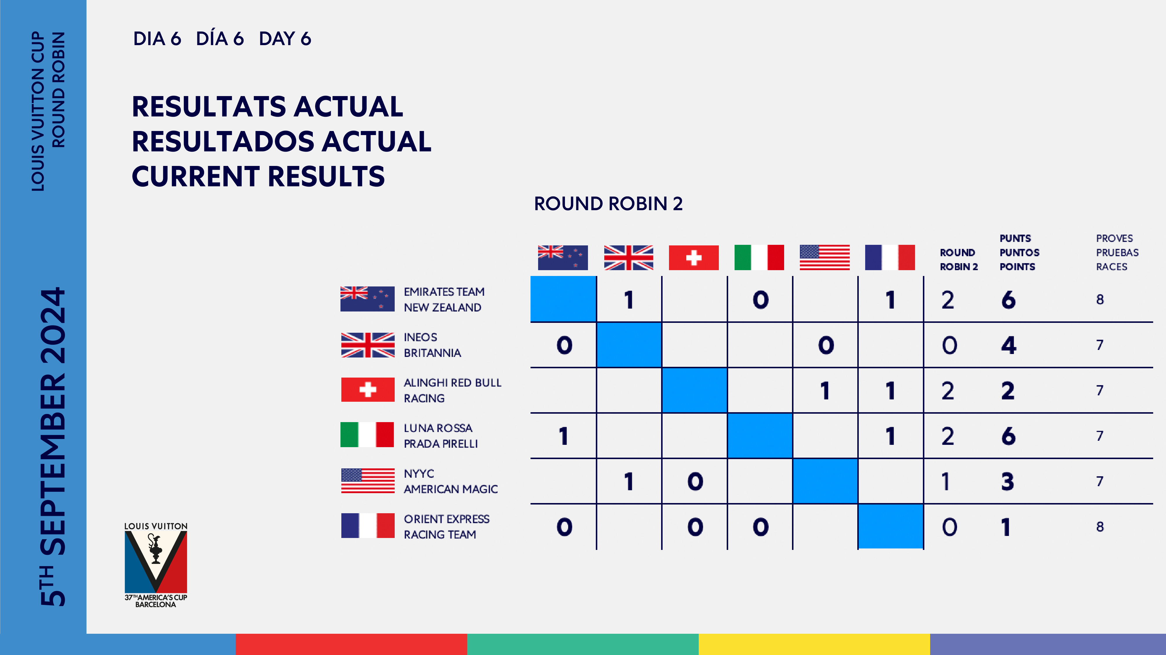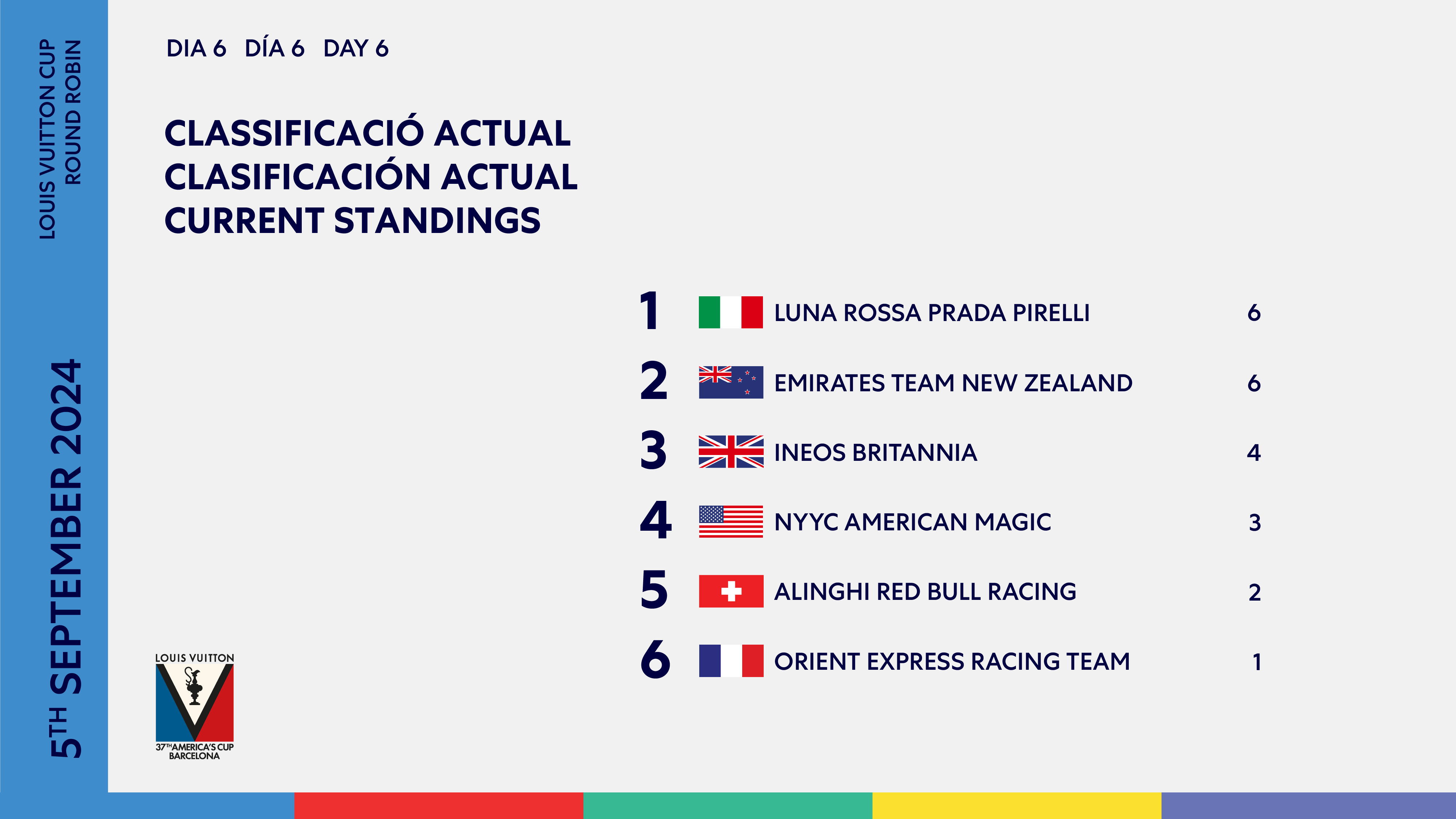 After completing the scheduled five races today, the Louis Vuitton Cup will pause on Friday ahead of an exciting crescendo to conclude the second Round Robin over the weekend. There are another five races on the card for Saturday and a scheduled three races on Sunday as Barcelona welcomes the world to this ‘jewel in the sun.’