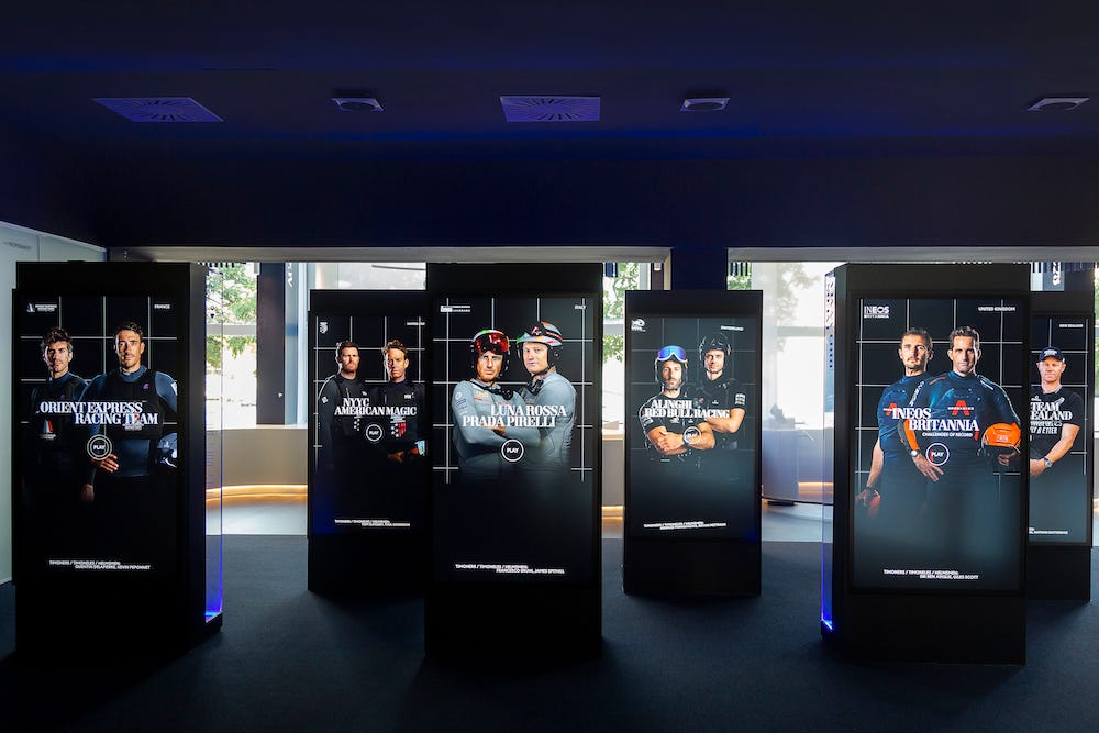 It's a sensory experience from the moment you walk into the main atrium that features a replica of the America’s Cup trophy set beneath two giant replica foils of Emirates Team New Zealand, the Defender of the trophy, and INEOS Britannia, the Challenger of Record. A giant video wall welcomes you to the exhibition centre and starts to build the excitement as we count down to the start of the Challenger Selection Series just over a year from now.