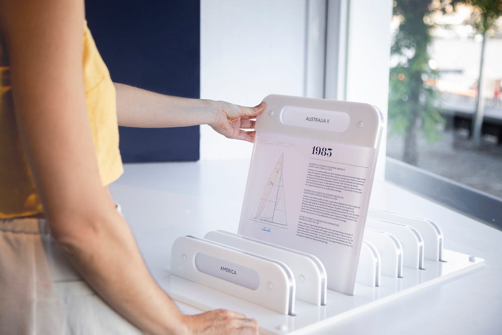Walking through the free area, visitors can learn about the racing and get familiar with the racing teams and the uniforms they wear to compete at the highest level of international sailing. From there, a walk through the learning desks provides information on the AC75, the exciting AC40, the innovation required to build and sail these boats, the America’s Cup’s commitment to sustainability and a fabulous information graphic and video of Barcelona and the Sea.