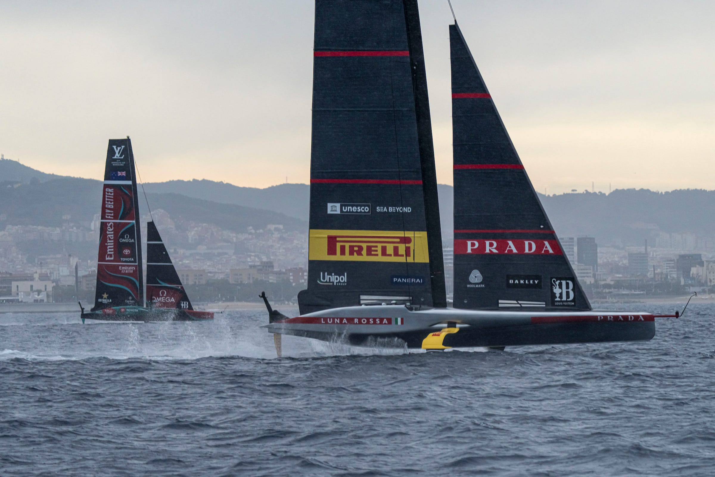 Rain clouds coming off the mountains to the north of Barcelona produced some challenging and dynamic conditions with enormous shifts in the wind on day one of the Louis Vuitton Cup second Round Robin - the stage of the Challenger Selection Series where every race really matters. It’s ultra-serious from here on in with the immutable fact that for one team on Sunday, if everything goes to schedule, their Louis Vuitton 37th America’s Cup dream ends and they are eliminated. A harsh reality.