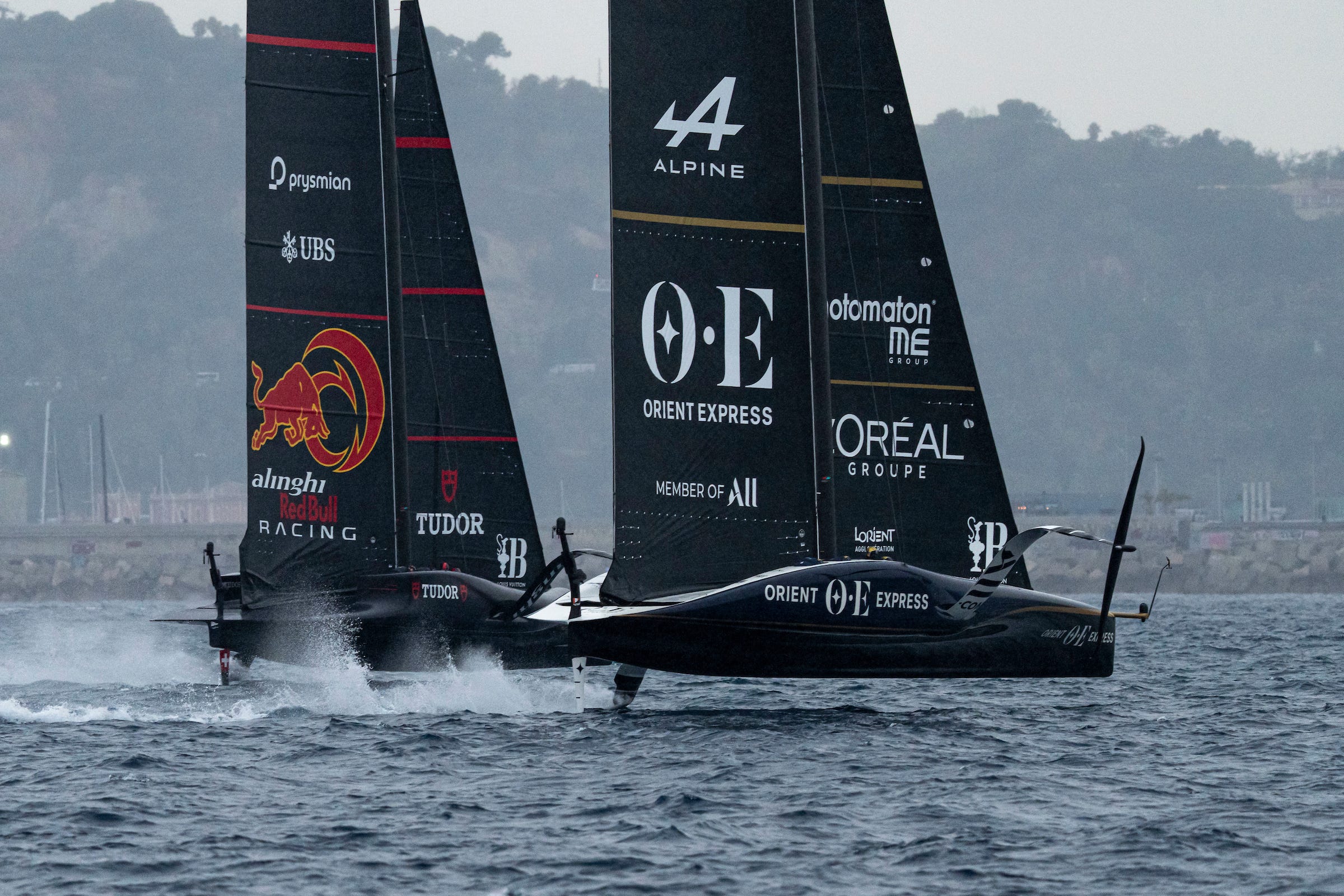 Tension was palpable at dock-out with flag-waving supporters sending off their teams with unbridled enthusiasm ahead of some high-pressure racing – none more so than in the opening race of the day between Alinghi Red Bull Racing and Orient Express Racing Team. The Swiss, winless from Round Robin 1, were imperious from the start, building a massive lead and capitalising on a French mistake that saw them off the foils on the first upwind leg.