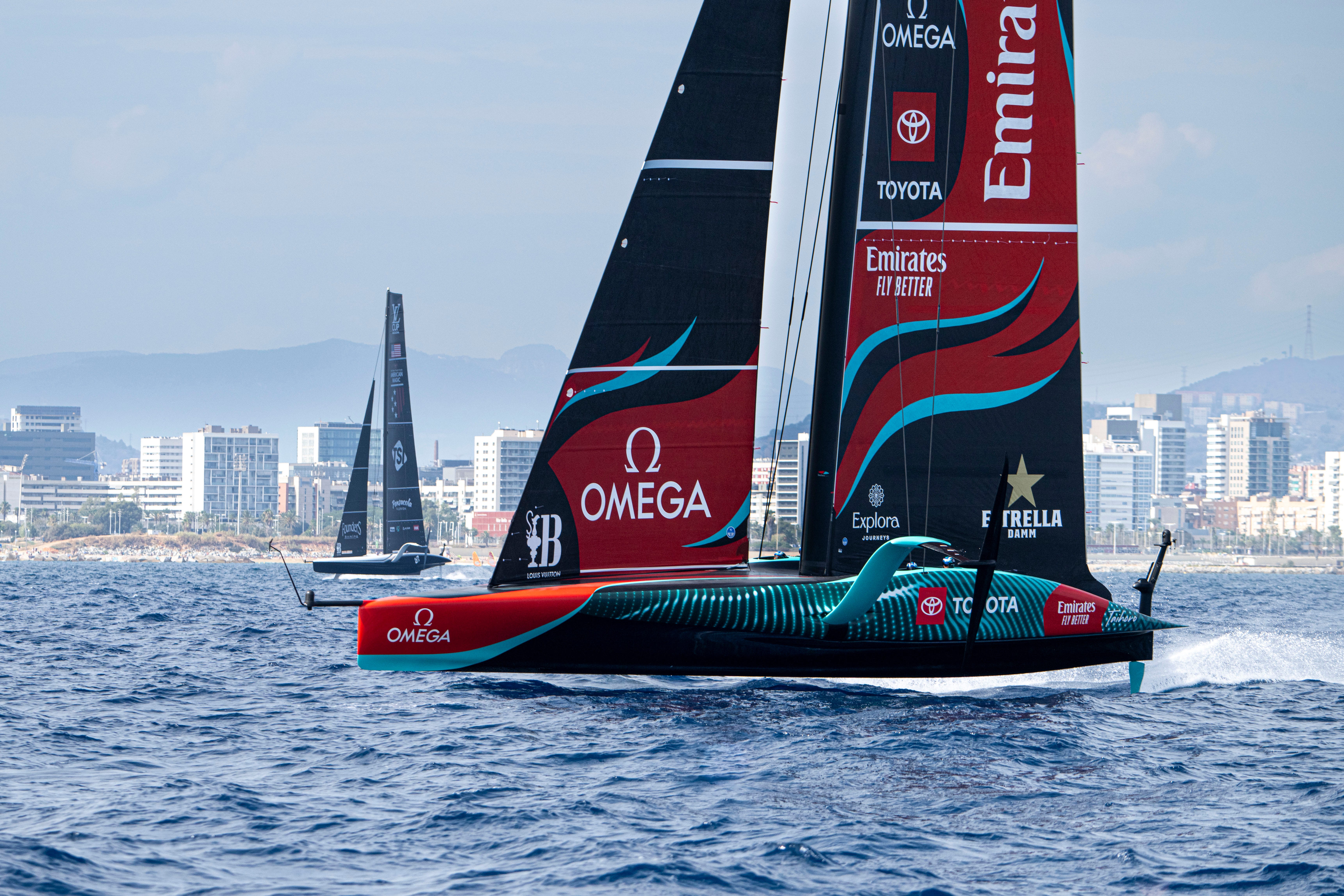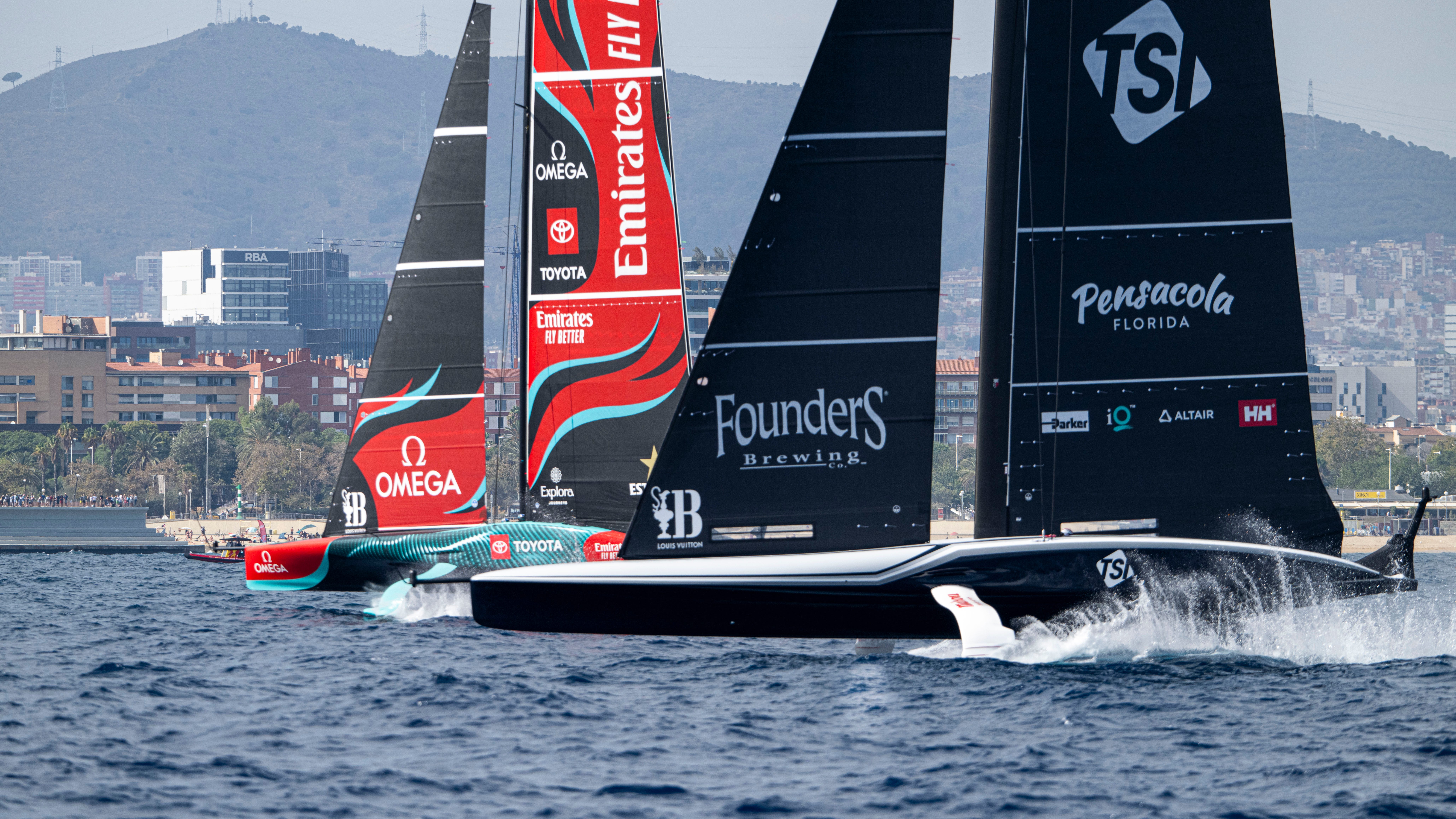 Barcelona delivered some stunning conditions on the fourth day of the first round robin stage of the Louis Vuitton Cup with an easterly breeze that oscillated around 10 knots allowing the Race Committee to set a course running close to the Barceloneta beachfront and providing a superb sailing spectacle.