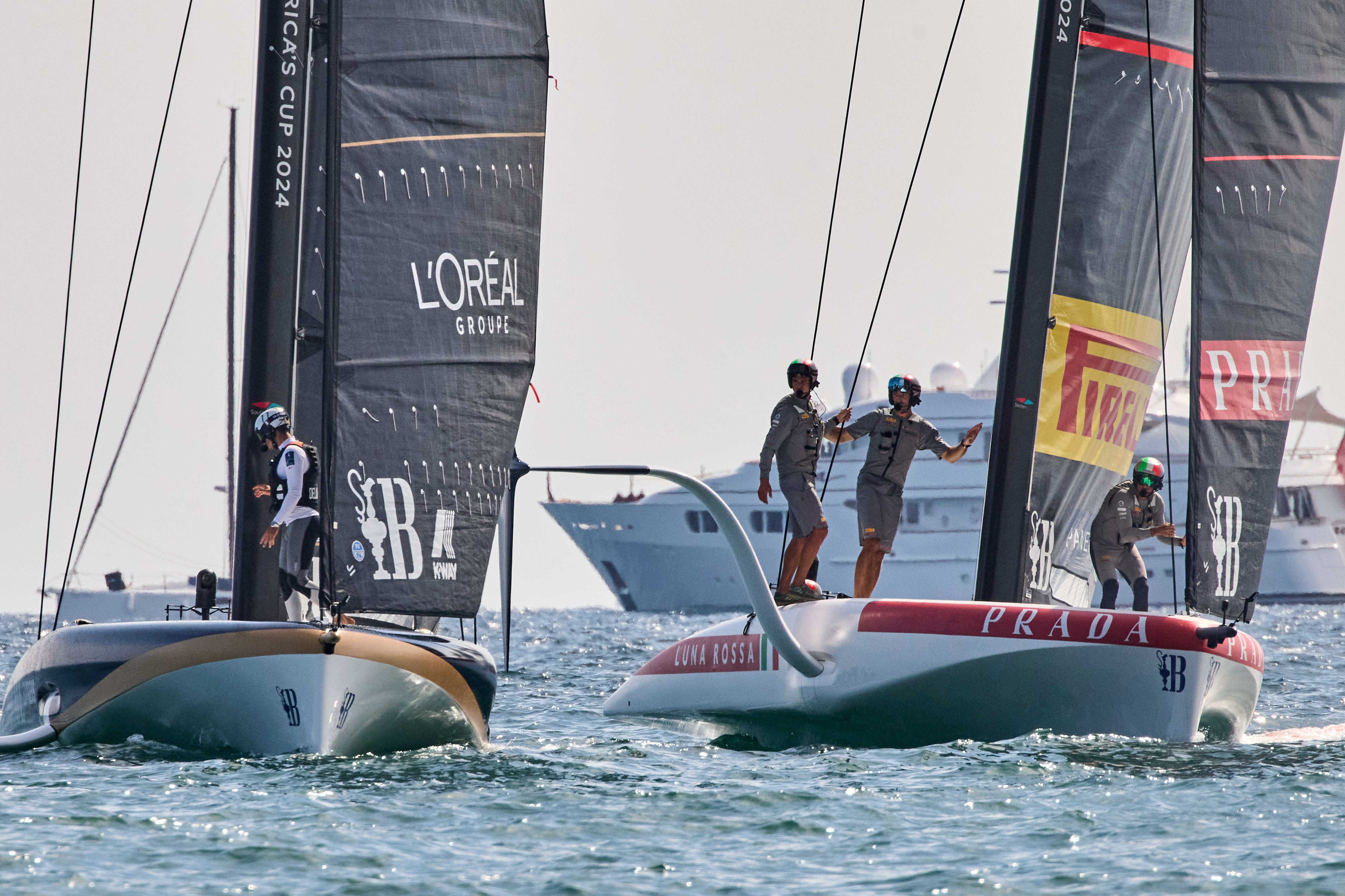 [It’s worth noting here the unusual scoring system used in the America’s Cup for fleet racing that significantly rewards a podium placing with 10 points for a race win, seven for second, five for third. Fourth scores three points, fifth gets two points, with one point going to sixth.]